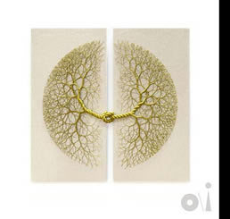 "La primera obra de arte es una pieza especial de Janaina Mello Landini. La forma en que toma la cuerda y la desenreda es casi como fractales o troncos de árboles y, en cierto modo, también se parece al cerebro, por lo que veo muchos puntos de partida.